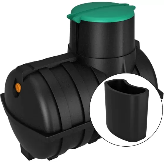 Септик имеет герметичный цилиндрический корпус, изготовленный из пищевого полиэтилена.